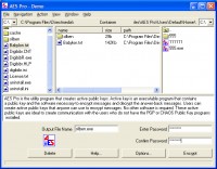 AES Pro is the utility program that creates active public keys. Active key is an executable program that contains a public key and the software necessary to encrypt messages and decrypt the answer-back messages. Users can create active public keys that anyone can use to encrypt messages. No other software is required. These active public keys are ideal to create communication with the users who do not have the PGP or CHAOS Public Key programs installed.