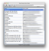 A tool for recovering your lost product keys for Mac applications. Mac product key finder will scan your Mac for installed software and show you your serials numbers. The list can be saved to HTML, CSV, XML, PDF or TXT file or can be printed. Mac product key finder might be very useful for backup purposes to save all your serial numbers before it is too late. Furthermore, product key finder for Mac will recover your Mac serial number and serial numbers of your devices such as iPod, iPad, iPhone if you have connected then with iTunes before, you may need them in case you will lost your devices.