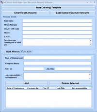 MS Word Work History and Education Resume Software