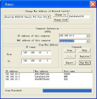 Find and change Mac Address in seconds! Scan Mac Address within any range of IP address. Exports the scanning results from a Mac Address Lookup list. Spoofing the Mac Address of your network card to any new Mac Address.It makes ping mac address possible.Use this mac address finder to search proper mac address. It is not only a mac address scanner but also a spoofer.