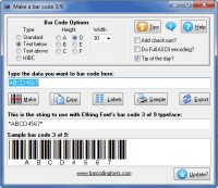Print your own code 39 from Windows! This TrueType and PostScript bar code font set adds the ability to print barcodes to virtually any Windows program. Barcode 39 is the most popular bar code type. It is does not require a checksum, and lets you encode numbers (0-9), upper case letters (A-Z), and some special characters (space, $ % + - . /). Simply begin and end each barcode with an * (so to bar code 123 you type *123*).