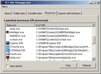You don’t want spywares who use you unusefully your system resources ? NCT Win Manager Pro is made for you ! In only one click, you can list all the active processes or better, create a list of the visible and hidden programs with their corresponding icon. Then with an other click, you can close the harmful programs. This program possesses very interesting second option, you can in some clicks only add or kill the starting up of a program in the load of Windows. A simple and effective solution to increase the competence of your computer ! Try it now !
