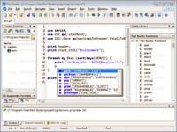 Perl Studio is an integrated development environment for Perl, providing comprehensive and easy-to-use solution for editing, debugging and deploying Perl based applications. This advanced Perl editor enables developers to code faster and more efficiently with many convenient features such as: Built-in HTTP server and internal web browser for testing CGI/Perl scripts directly, automatic code completion and parameter hints for Perl, and HTML objects and built-in FTP client for directly editing files from remote servers. Other features include: Configurable multi-language syntax highlighting for Perl, SQL, XML…, UTF8 / UTF16 encodings, search/replace with regular expressions, find in files, syntax checking for Perl code, visual file comparison utility, code libraries for Perl, HTML and JavaScript, templates, project management, parentheses matching, file explorer, custom color schemes, modern user interface with intuitive design and more…