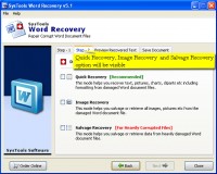 How to recover word doc document file? Get best Word Recovery Tool is the word reliable repair software to recover word doc document file which is easily and swiftly is only possible through word recovery software. Problems are no more problems with the help of recover doc file software. Salvage Recovery mode helps in recovering text from heavily corruption Word document. Word Recovery Tool provides facility to save file in different formats such as doc, txt & RTF (Rich Text Formatting). Corruption cause of any errors appeared in the time of opening a file. Few steps required to repair corrupt word files: 1. Browse and select the corrupted file 2. Select one of the following recovery modes 2.1 Quick Recovery 2.2 Image Recovery 2.3 Salvage Recovery 3. Preview of recovered contents 4. Save Documents in the following format 4.1 MS Word (choose one: 95, 97, 2000 or 2002) 4.2 HTML 4.3 Plain Text 5. Select one of the about and get back your corrupted data Now, you can think that how easy to recover Doc Document from corrupted Doc file. Any confusion regarding its working, you can try demo version and check it. Demo version is completely free and preview of recovered corrupt data. If you get satisfied and need to use its license version, buy licensed version from our site. Software run successfully in all version of MS Word and provides platform independent facility to use this in any version available of windows.