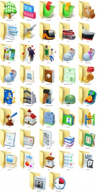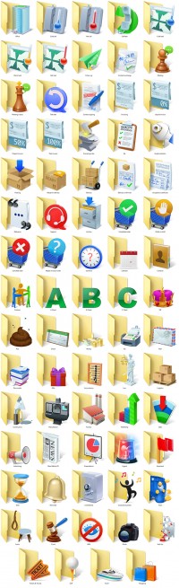Set of 74 folder icons with business symbols